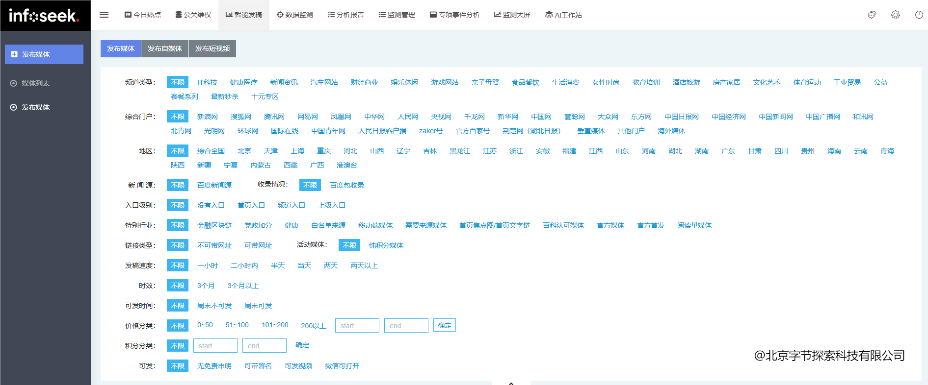 以前做发布,找渠道就是个题。要么靠人脉一个个联系,要么找公关公司转包,不只耗时间,还没法渠道质量,常常是 “钱花了,Infoseek 整合了 1。7 万多家正轨和 40 多万个垂曲范畴自资本,还给每个渠道都贴了细致标签,好比受众群体、内容气概、行业属性等。